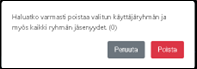 Poistaaksesi ryhmän paina ”Poista”. Palataksesi takaisin, paina ”Peruuta” -painiketta